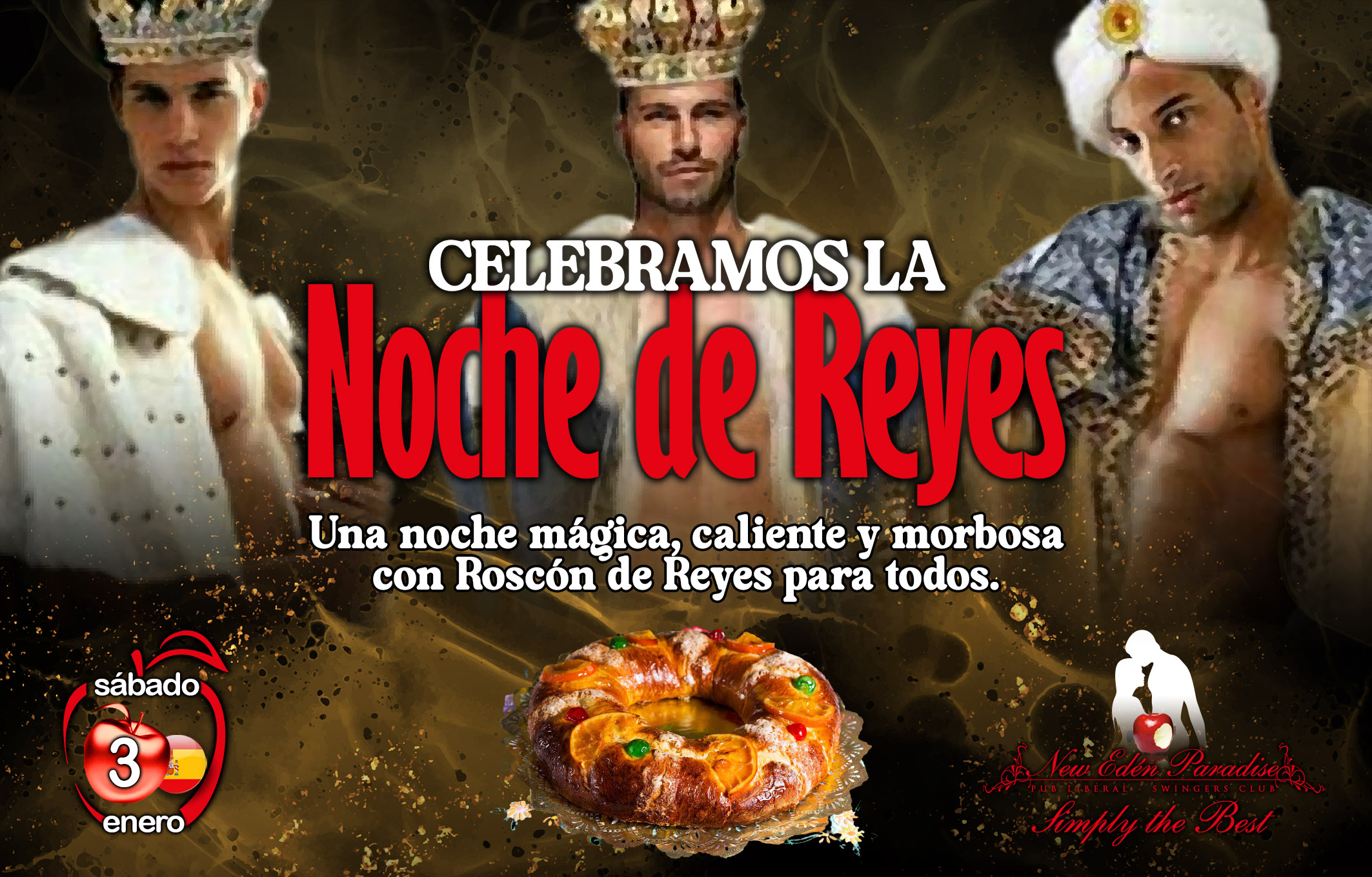 Una noche mágica, caliente y morbosa con Roscón de Reyes para todos.