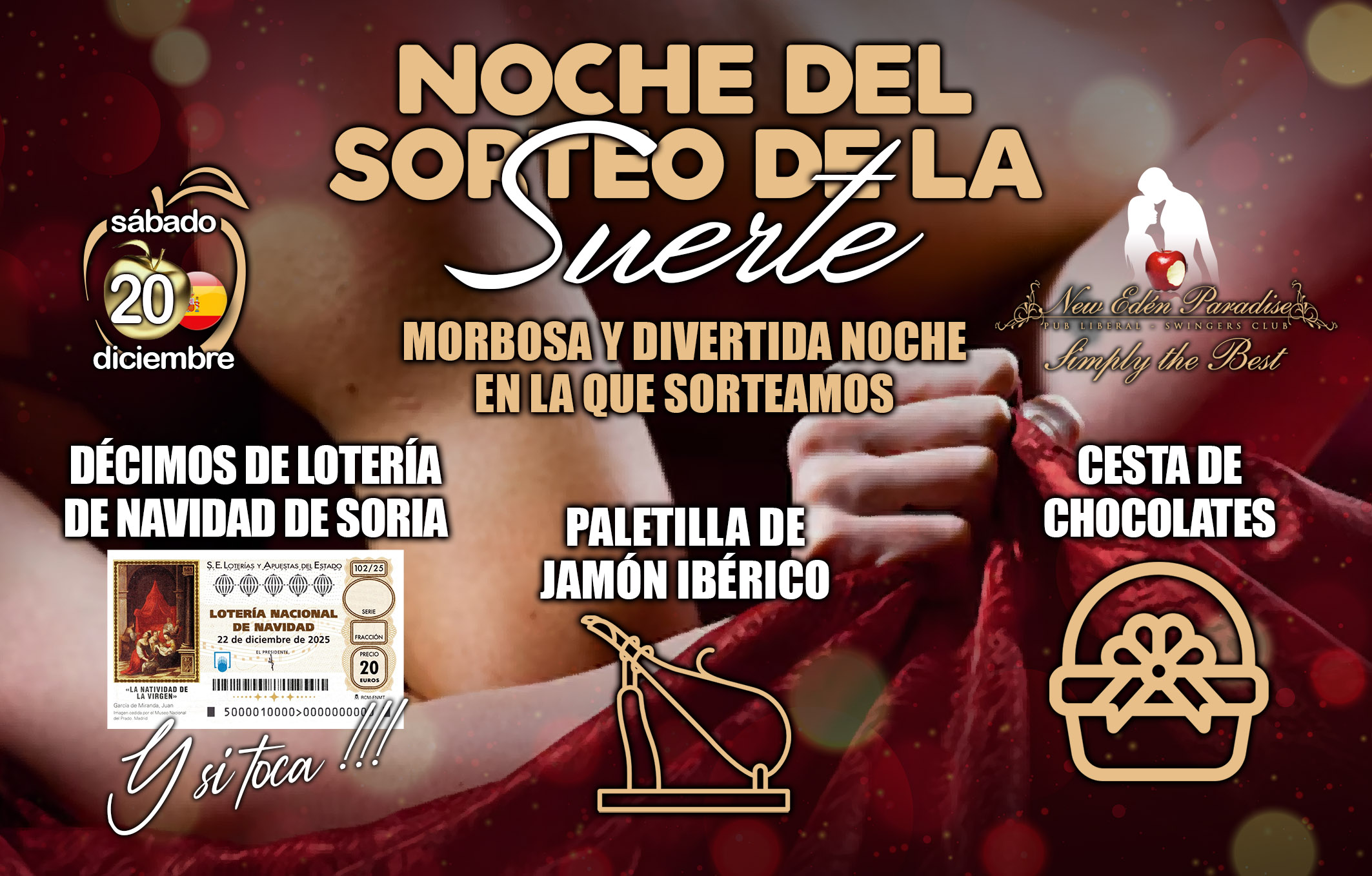 Morbosa y divertida noche en la que sorteamos: Décimos de lotería de navidad de Soria. PALETILLA DE JAMÓN IBÉRICO. CESTA DE CHOCOLATES.